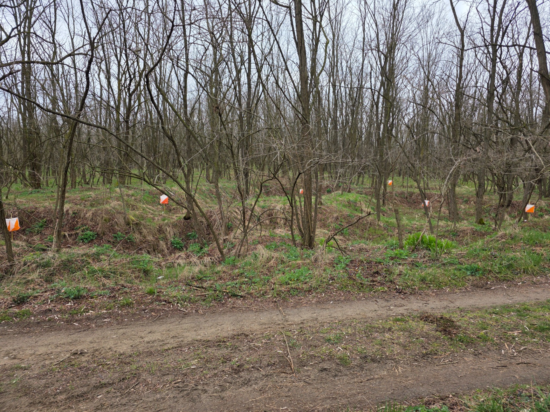 Bučové jadérko 2026 je už 3. ročníkom pretekov v orientačnom behu. Znova sa podarilo pripraviť oblastné preteky „doma“ – neďaleko Lábu, v malom lesíku pri jazere Axi. Na malom kúsku sa tu striedajú úseky pieskových dún, plochý lesný terén s výbornou priebežnosťou, inde množstvo jám a terénnych detailov, ale aj poriadna divočina s hustým černicovým podrastom, močiare a malé jazierka. Stredom lesa vedie jedna priama cesta a nenápadné prieseky, ktoré boli ešte vo februári husto zarastené tenkými prútmi mladého agátu. Na prvý pohľad veľmi zaujímavý terén, ale ako v ňom postaviť trať pre deti? Práve tie prieseky boli na detské trate nevyhnutné. Počas jedného víkendu tak všetky prúty pod veľkými záhradníckymi nožnicami postupne zmizli, aby boli prieseky pekne viditeľné. Po tomto zásahu musel Palo upraviť mapu – prieseky predĺžil. Ďalší „bláznivý“ nápad bol využiť svet jazierok a bažiniek. Lenže tie boli úplne nedostupné, všade navôkol husté a vysoké černice. Prišiel ďalší víkend a mapa sa opäť menila. Po zásahu v šrafovanom podraste pribudli biele miesta. Pred pretekmi sa v plnom klubovom nasadení, s kopou nožníc v rukách, biele koridory ešte viac zvýraznili, odstránili sa aj veľké konáre obrovského stromu, ktorý spadol len dva dni pred pretekmi. Každá jedna kontrola bola potom dostupná bez rizika stretu s černicami a medzi všetkými kontrolami sa dalo veľmi rýchlo bežať „po bielom“. O to väčším prekvapením bolo, že niektorí borci si aj tak zvolili postup priamo cez černice – a ten musel byť poriadne bolestivý.